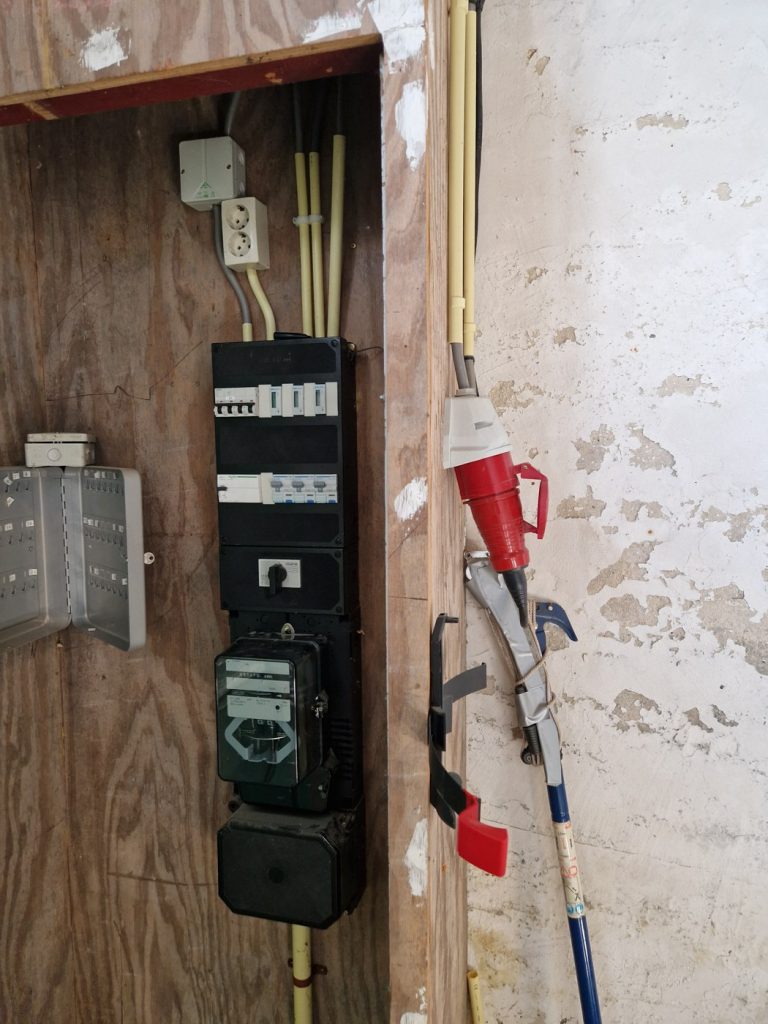 Het geheel beschikt over een eigen meterkast, er is krachtstroom aanwezig. De vloer is van beton.
