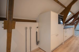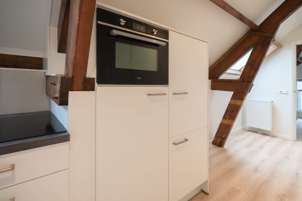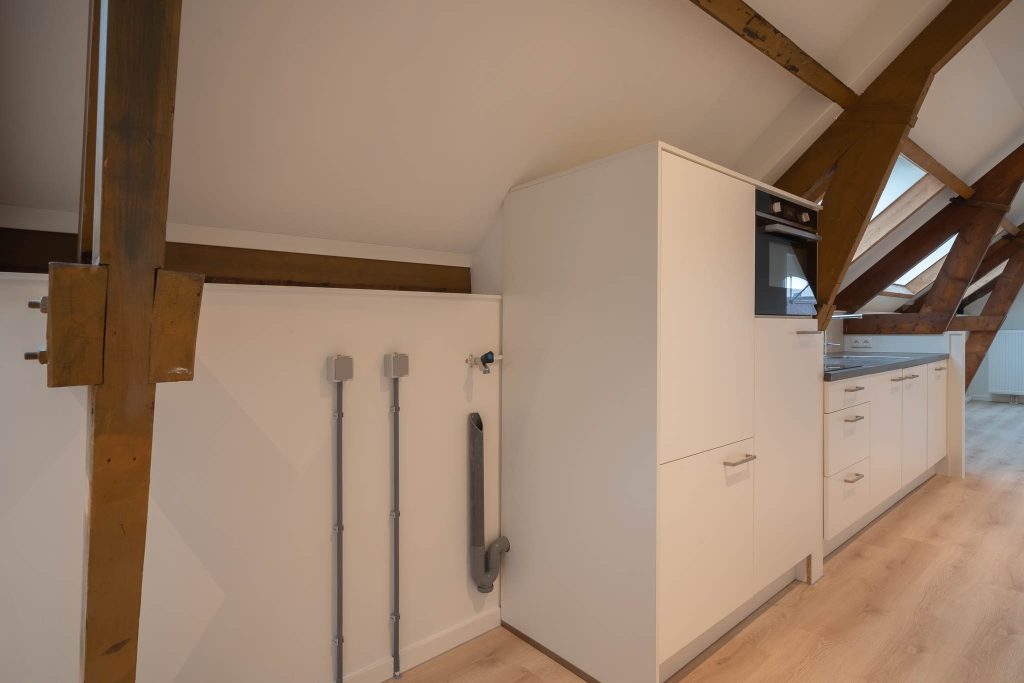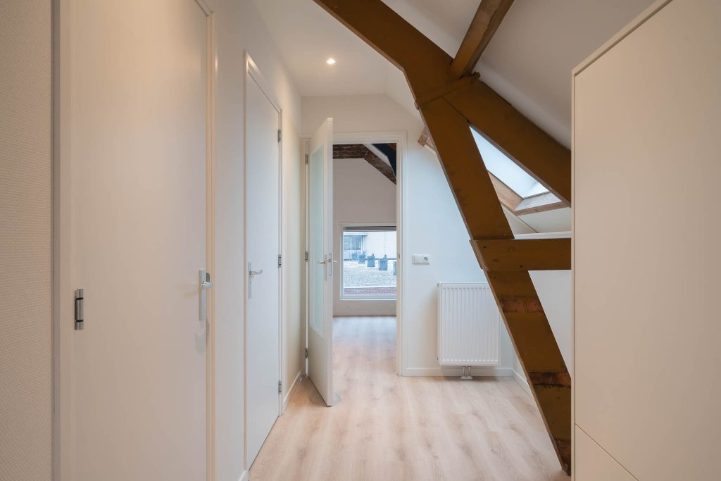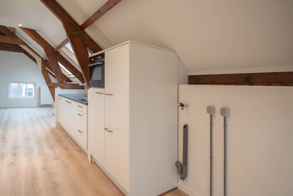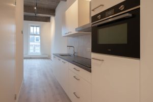 De acht appartementen die te huur worden aangeboden hebben een oppervlakte van circa 60m² en zijn verdeeld over vier verdiepingen. Dankzij de dubbel geïsoleerde wanden en de zwevende dekvloer worden geluiden vanuit de omgeving tot een minimum beperkt. Elk appartement beschikt over een ruime leefomgeving waarin de woonkamer en keuken samen komen. De keuken is voorzien van een inductiekookplaat, combimagnetron, koelkast en vaatwasser. Er is een slaapkamer met balkon/binnentuin en een eigen badkamer met toilet, douche en wasbak. In het appartement zijn aansluitingen aanwezig voor wasmachine/droger en internet en tv (Ziggo). Verwarming in het appartement is geregeld middels radiatoren en er is een eigen Cv-installatie en intercom met videosysteem.